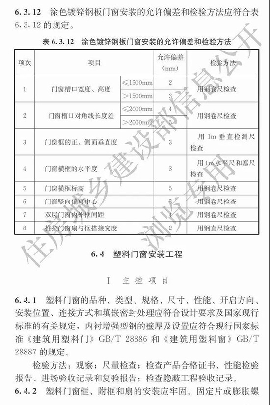 《建筑装饰装修工程质量验收标准》GB50210-2018中,关于门窗工程的质量验收标准如下: